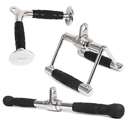 ✅ V Shaped Bar & V Handle with Rotation – Constructed of high-quality solid steel with polished chrome finish. 0.6 inch hole can fit easily for all cable system. Textured rubber coating handle,provides ergonomic & secured grip during workout, provides a balanced force to both arms when attach it to any gym machine.
