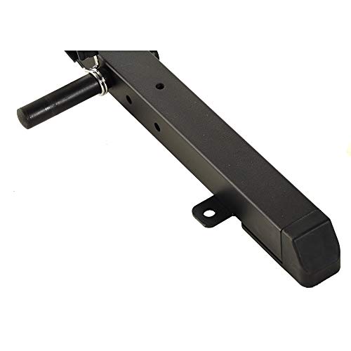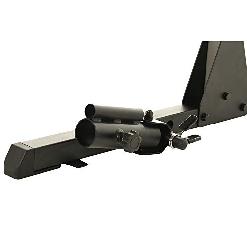 Landmine attachment compatible with Standard and Olympic barbells, can be adjustably place are different location on the frame.
