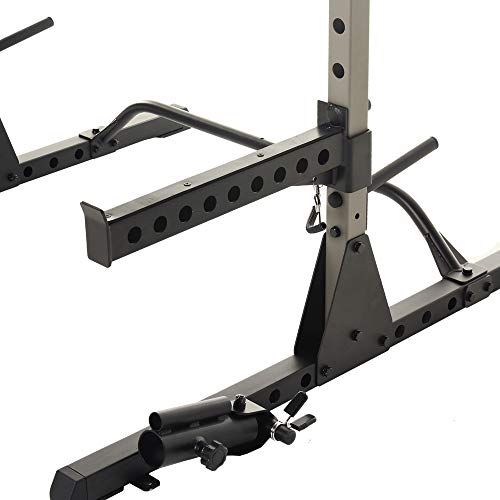 Fitness Reality Multi-Function Adjustable Power Rack Squat Stand with J-Hooks, Land Mine, Adjustable Weight Horns, Grey