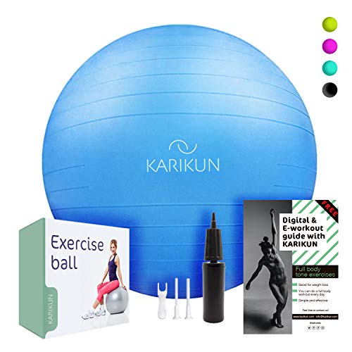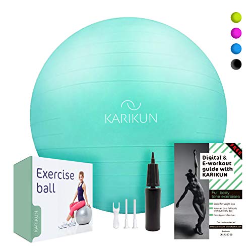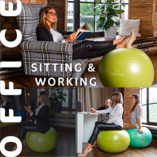 MULTIPLE USES – The versatility of KARIKUN exercise ball stretches beyond exercise into activities such as correcting posture & relieve back pain, pilates, pregnancy gymnastic, CrossFit, abdominal training, play therapy, office ball chair, labor support during pregnancy and birthing. Available in multicolor for the perfect look and fit.
