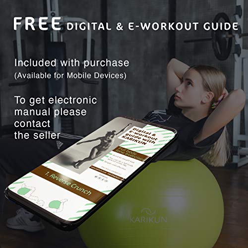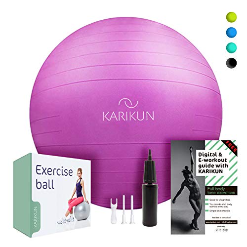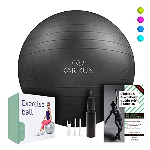 KARIKUN Exercise Ball, 65cm Yoga Ball, Medicine Ball Chair for Fitness – Stability Balance Pilates Core & Workout with Quick Pump – Upgraded Anti Burst Slip Resistance – Home Gym Office Chair