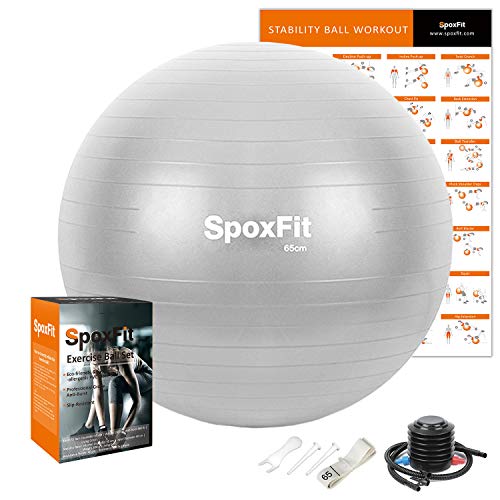 SpoxFit Exercise Ball, 65cm Anti-Burst Yoga Ball, Stability Fitness Ball for Birthing & Core Strength Training – Includes Quick Pump & Workout Poster